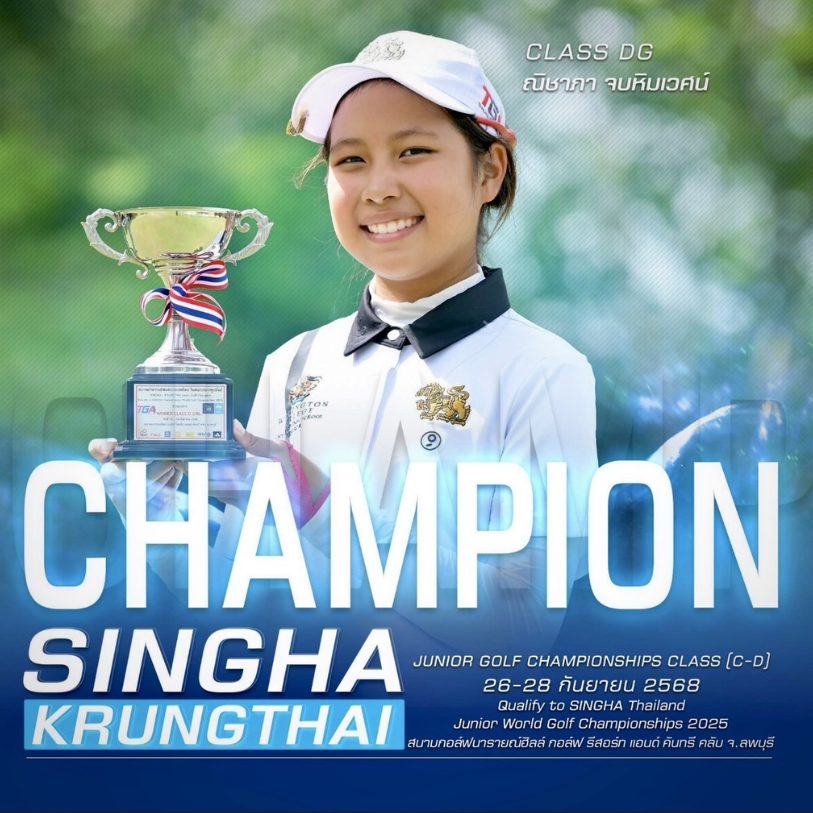This victory secures her qualification for the prestigious Singha Thailand Junior World Golf Championship, to be held at the Royal Hua Hin Golf Course from 30 Oct - 2 Nov 2025.