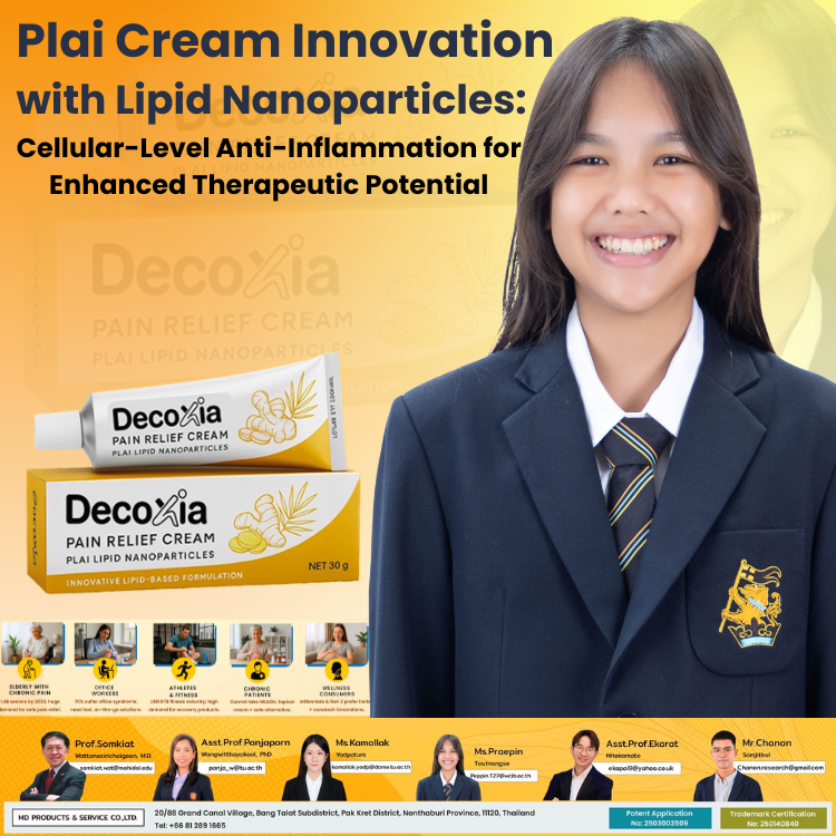 Their project - an anti-inflammatory cream from Plai Herb using lipid nanotechnology - showcases creativity, innovation, and scientific excellence.